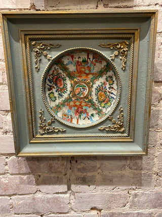 Vintage Annie Sloan Painted Framed Rose Medallion Plate