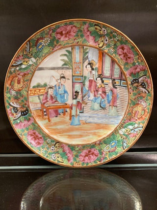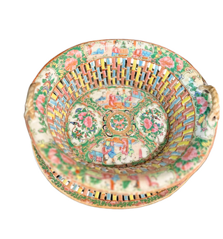 Reticulated Antique Rose Medallion Porcelain Bowl and Plate