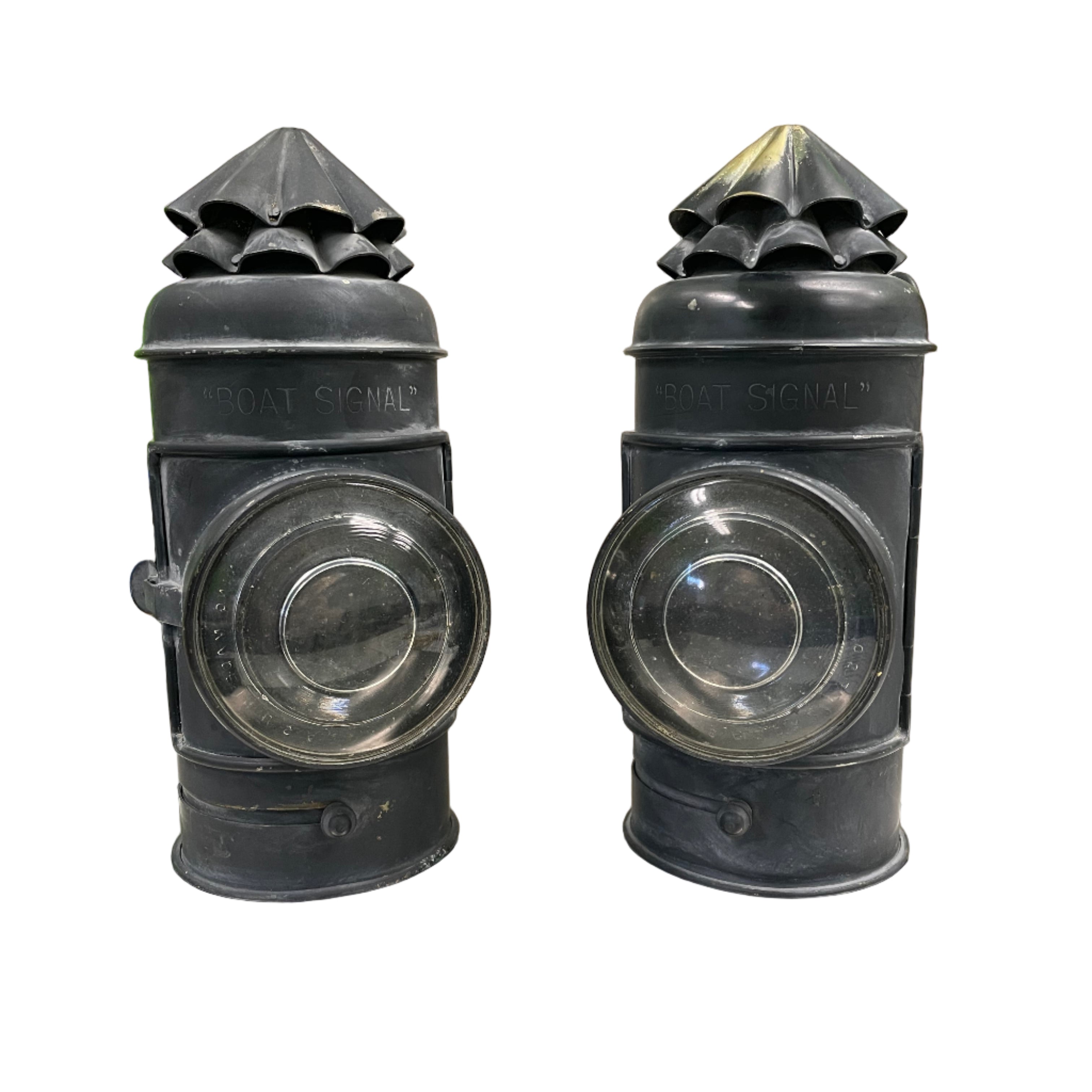Discover timeless elegance with this set of two antique Perko Marine Signal Lanterns. These exquisite lanterns showcase classic craftsmanship and authentic maritime heritage, making them perfect for collectors or enthusiasts seeking a sophisticated accent. Their enduring design and rich history bring a distinguished touch of nautical tradition to any space.