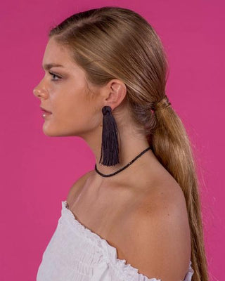 Beaded by W Medium Tassel Earrings - Jet Black