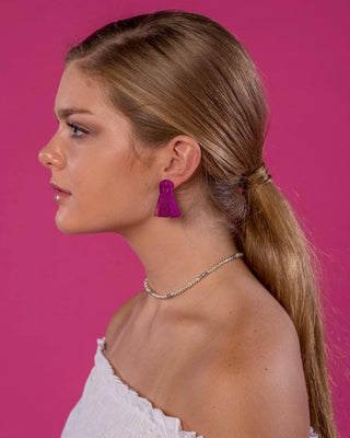 Beaded by W Mini Tassel Earrings - Plum Purple