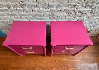 Pair Vintage Faux Bamboo Pink Nightstands