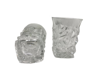 Set of 2 Ice Cut Crystal Low Ball Glasses