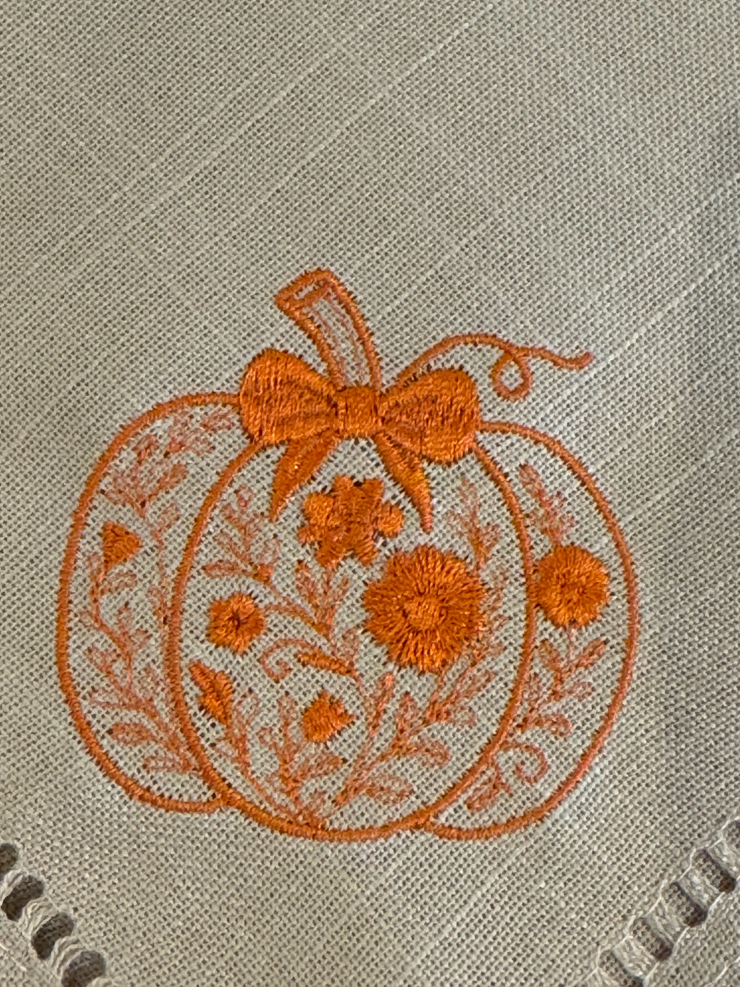 Taupe with orange embroidered pumpkin