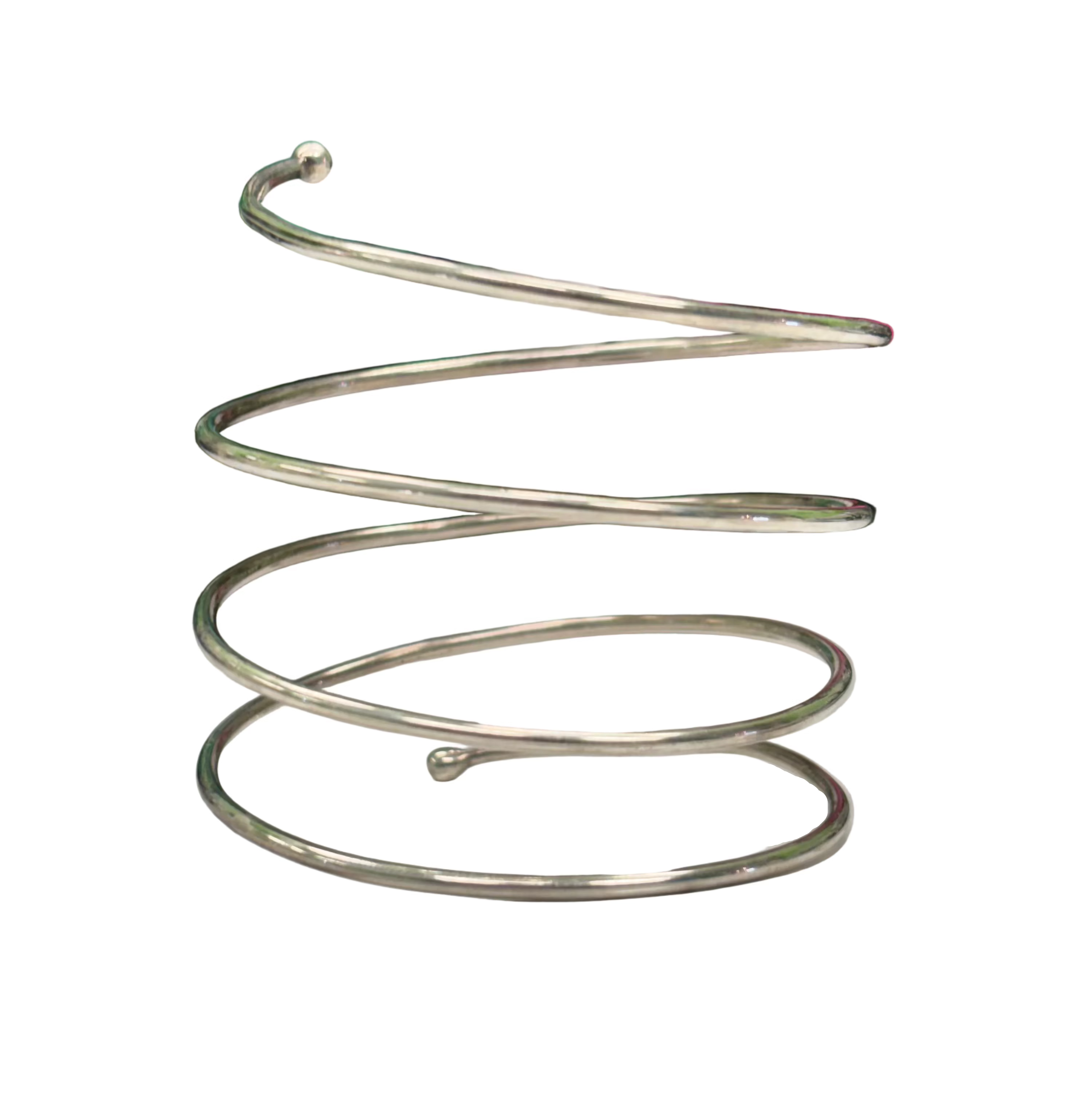 Discover the understated elegance of this sterling spring bracelet, a handcrafted piece by celebrated local artist Kip Kniep. The fluid, organic design captures movement and light with every gesture, making it a versatile accessory that transitions seamlessly from day to evening wear. Crafted in genuine sterling silver, this bracelet combines artistic vision with lasting quality. Perfect for those who appreciate wearable art that tells a story and reflects individual style.