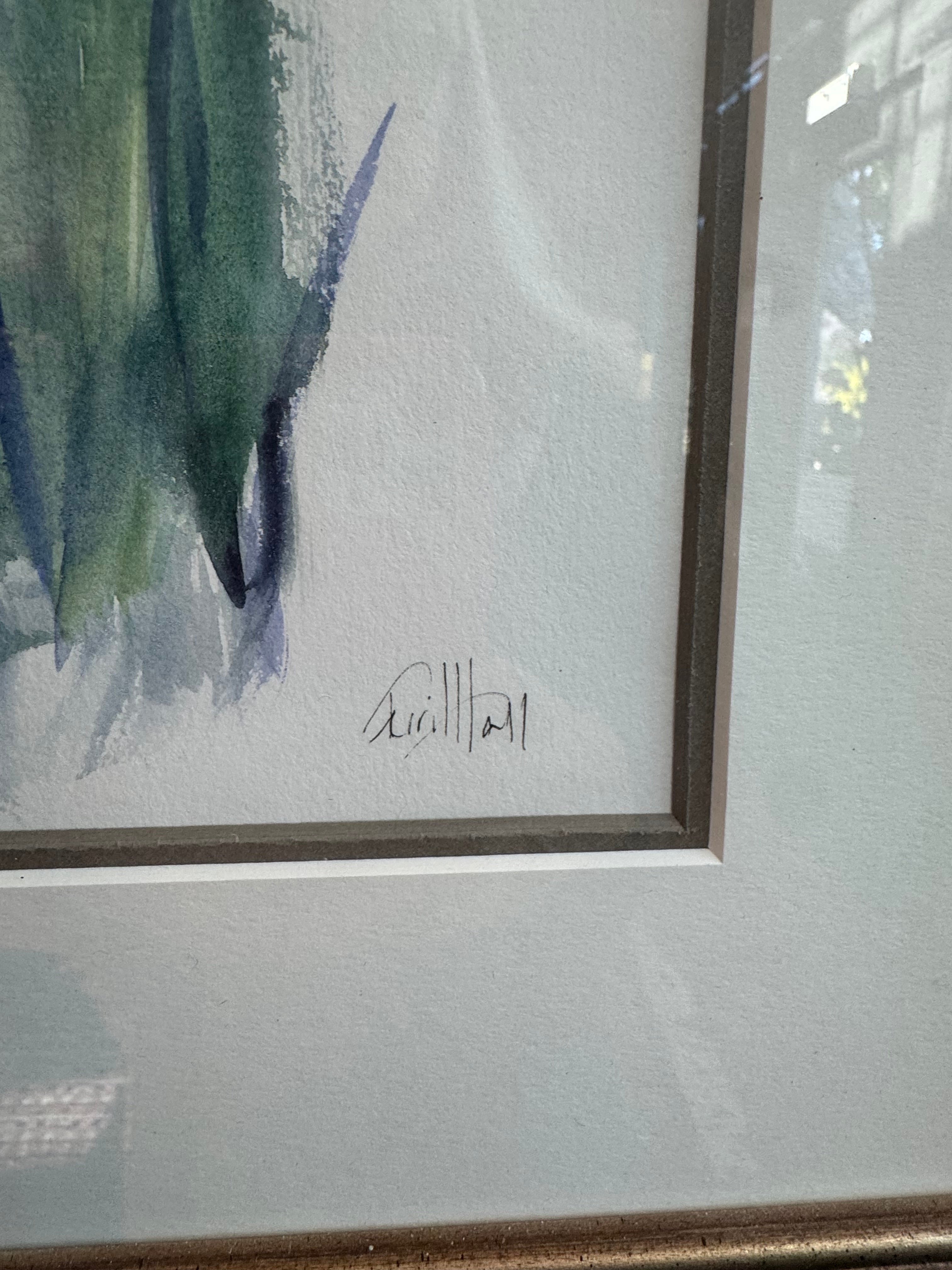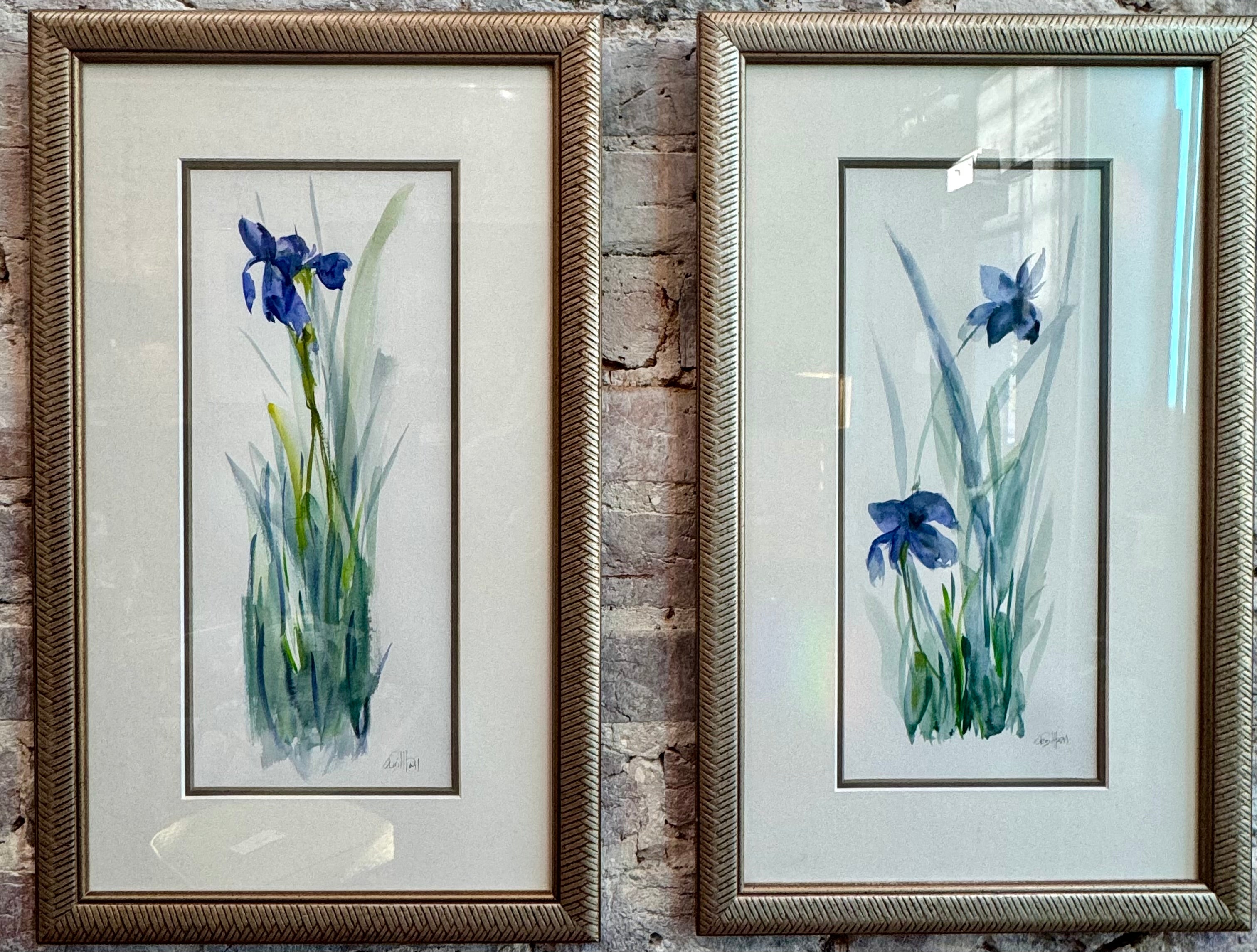 Add a touch of beauty and elegance to any space with this pair of Blue Iris watercolor paintings from local artist Terri Hall. The stunning flowers are expertly captured in soft brushstrokes, framed in champagne gold frames, and ready to hang. Perfect for adding a pop of color and sophistication to your home decor.