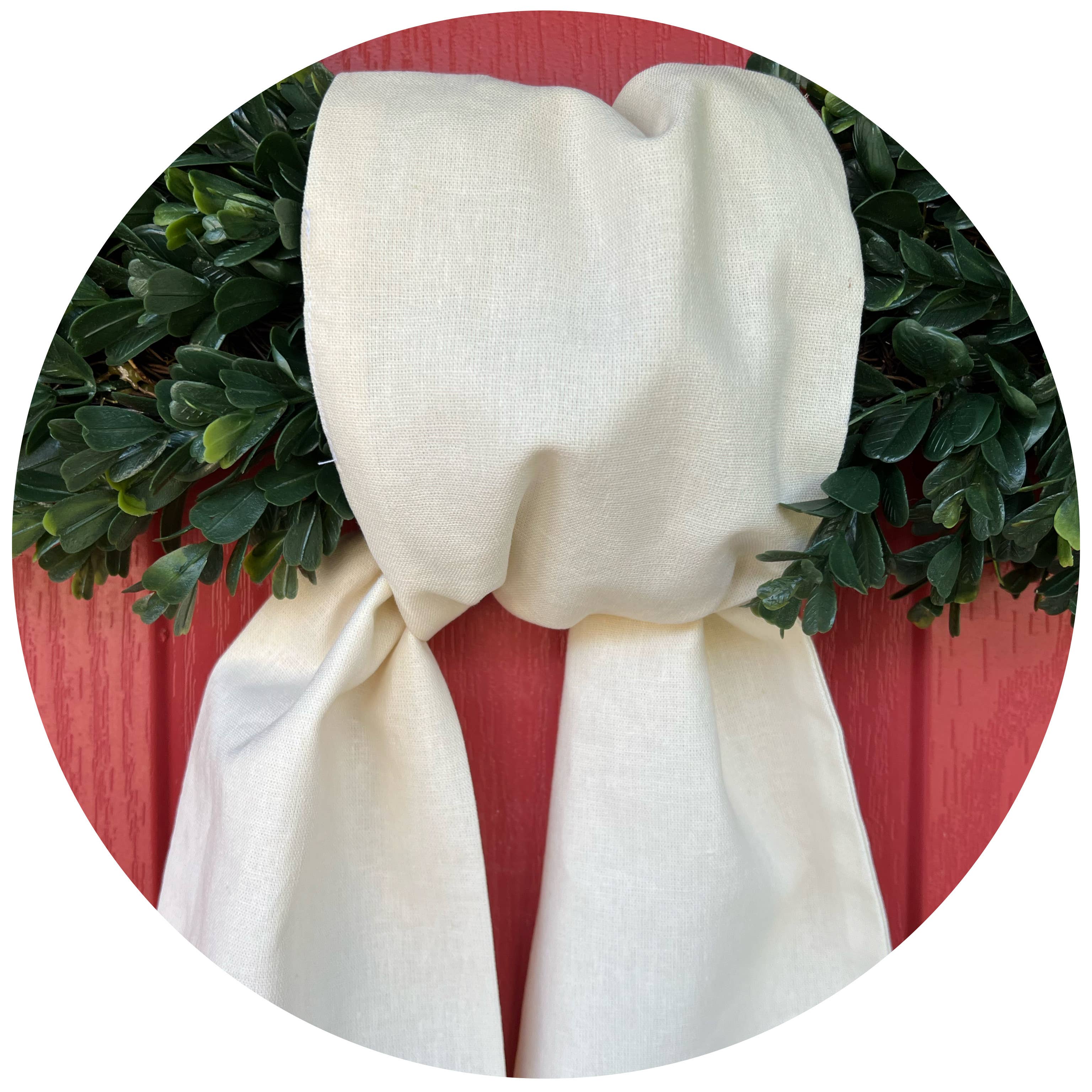 *Note: These items are custom made to order and are not returnable. Woven with fine metallic thread that offers a little shimmer to the fabric! - Available in 3 lengths - 44 inches, 54 inches and 74 inches. - 5 inches wide - enough for generous personalization options. - Machine washable for reuse, makes these linen sashes a worthwhile investment. Perfect for holiday home decor! *Photo shows 54 inches.